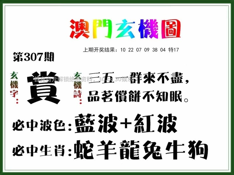 | 307期五肖 | 羊狗龙牛鸡 | 开:狗20中 |
